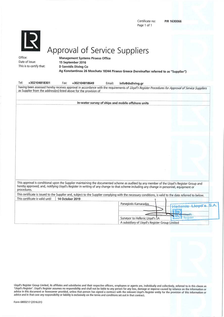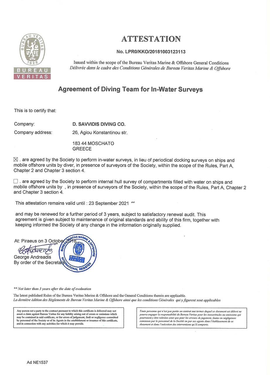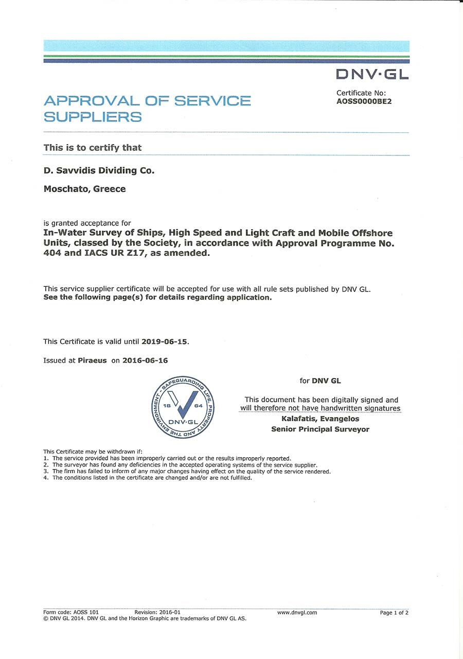 D. SAVVIDIS DIVING Co is a private company, member of the NAVAL TECHNICAL GROUP of Companies. Group activities cover a wide range of services directed to the shipping industry by experienced and appropriately trained Divers,Naval Architects and Mechanical Engineers with particular age-long specialty in the supervision of any time of ship. The members of the D. SAVVIDIS DIVING Co have been working for many years in this field and have more than 10 years of personal experience.