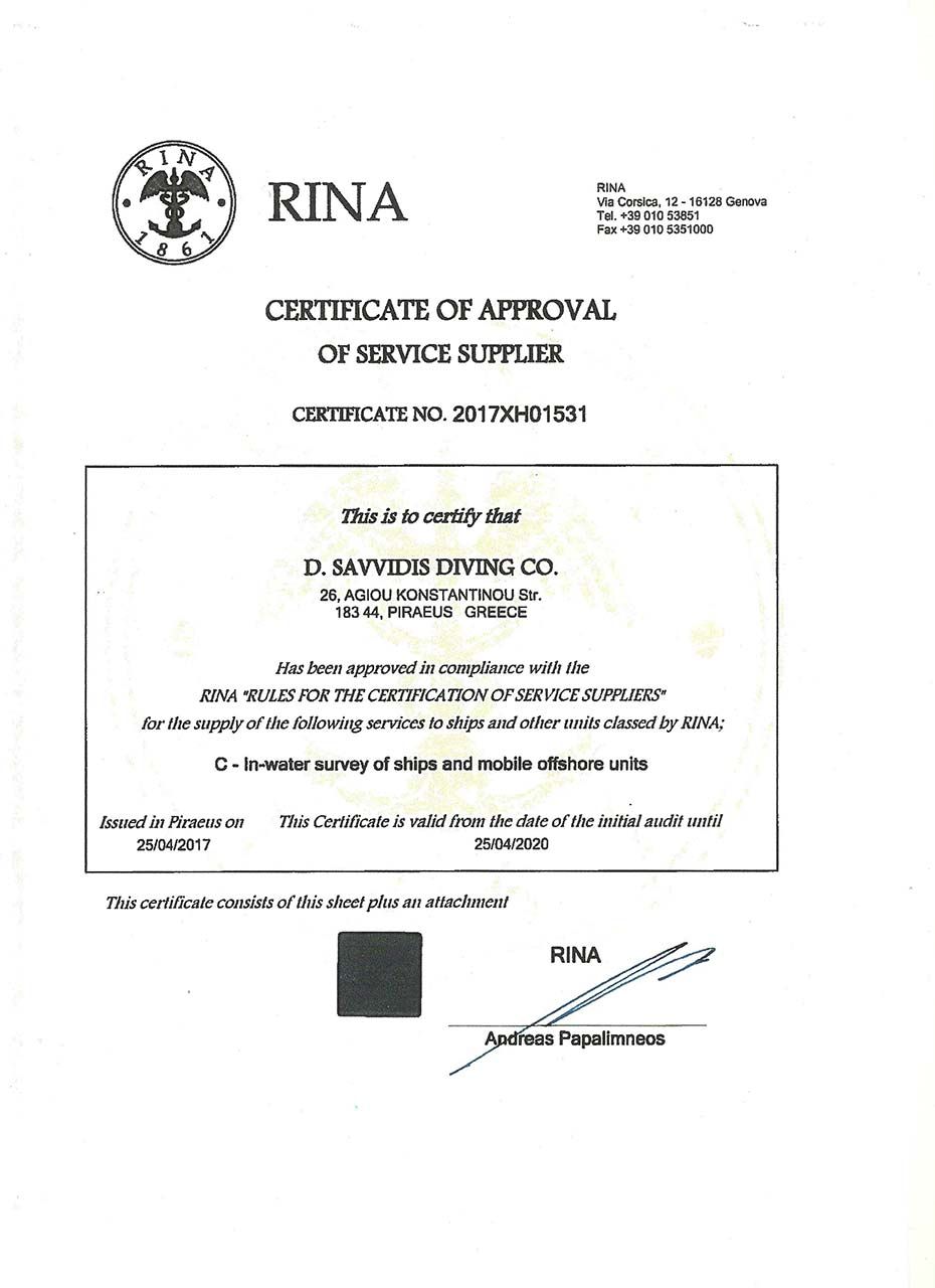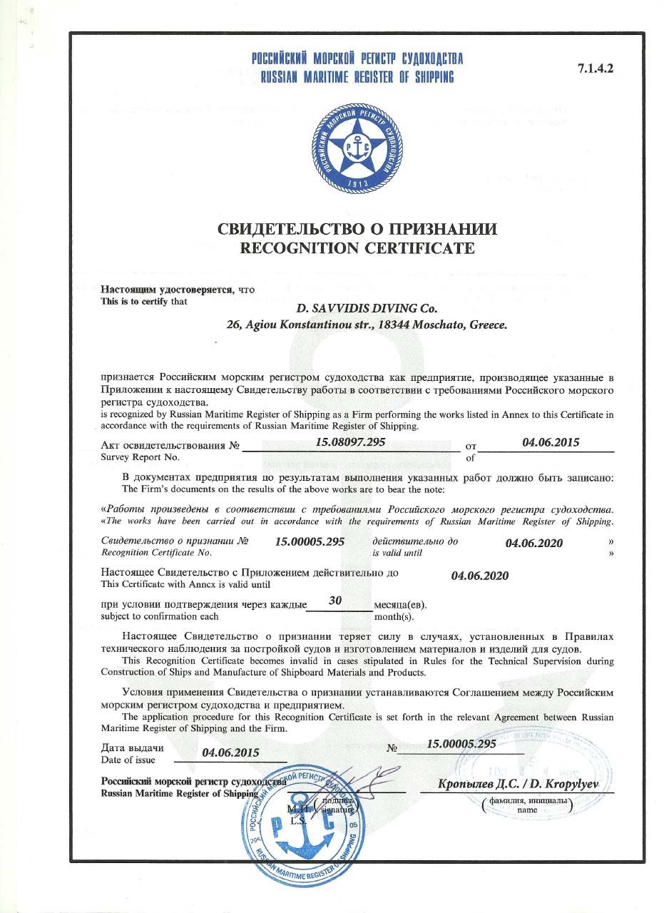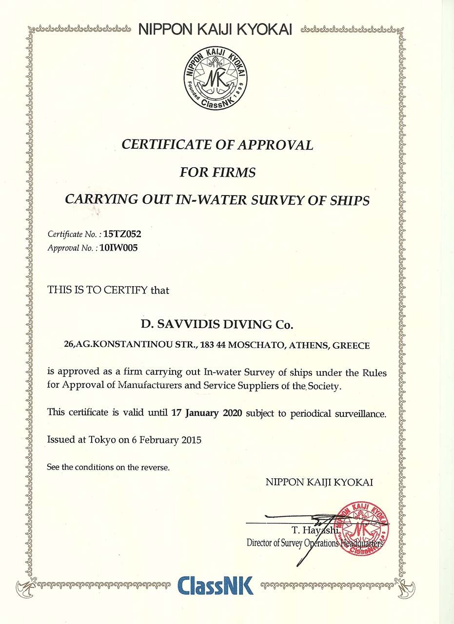 D. SAVVIDIS DIVING Co is a private company, member of the NAVAL TECHNICAL GROUP of Companies. Group activities cover a wide range of services directed to the shipping industry by experienced and appropriately trained Divers,Naval Architects and Mechanical Engineers with particular age-long specialty in the supervision of any time of ship. The members of the D. SAVVIDIS DIVING Co have been working for many years in this field and have more than 10 years of personal experience.